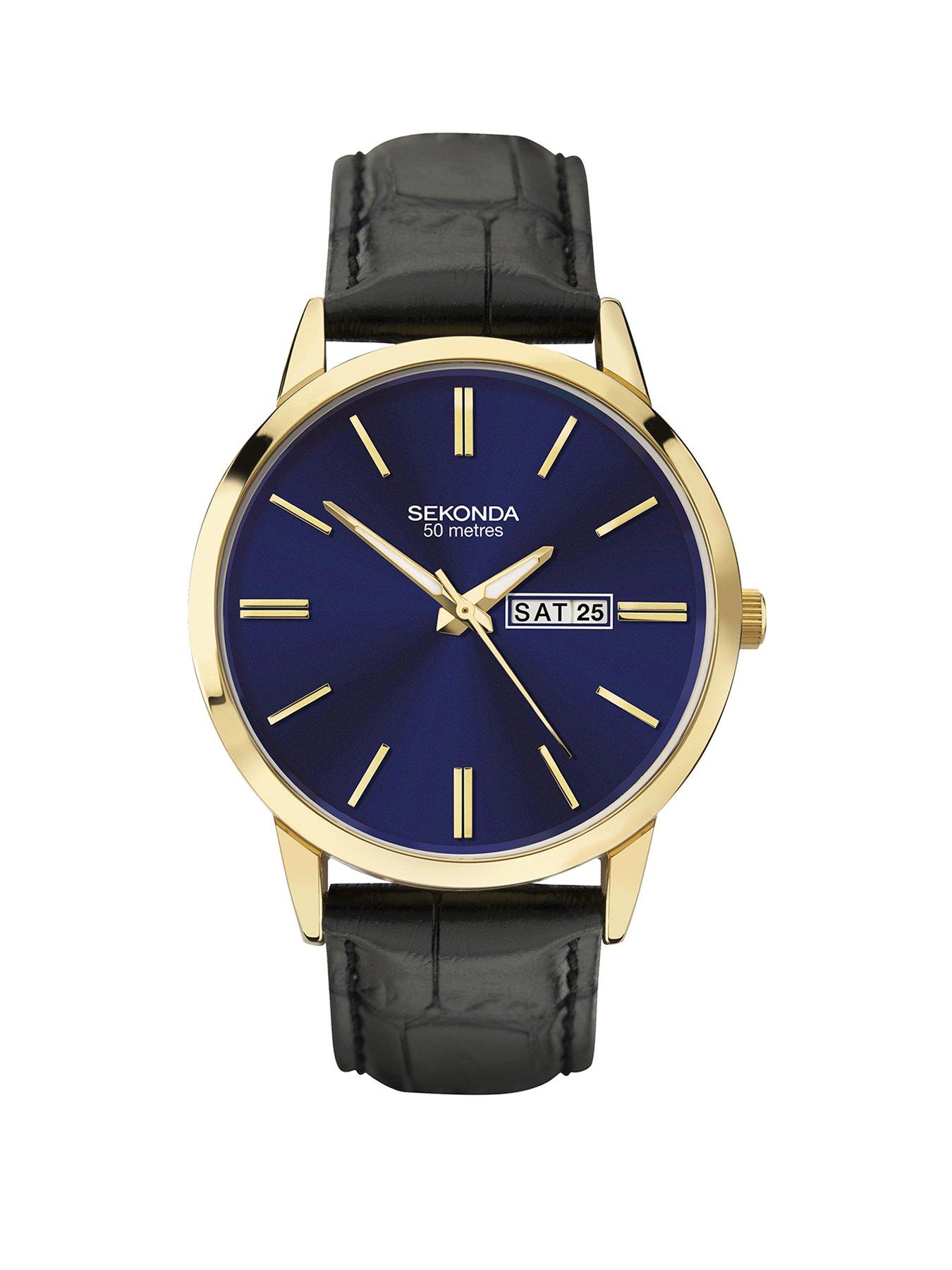 Sekonda Sekonda Men S Black Leather Upper Strap With Blue Dial Watch Very Ireland